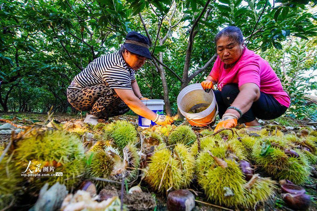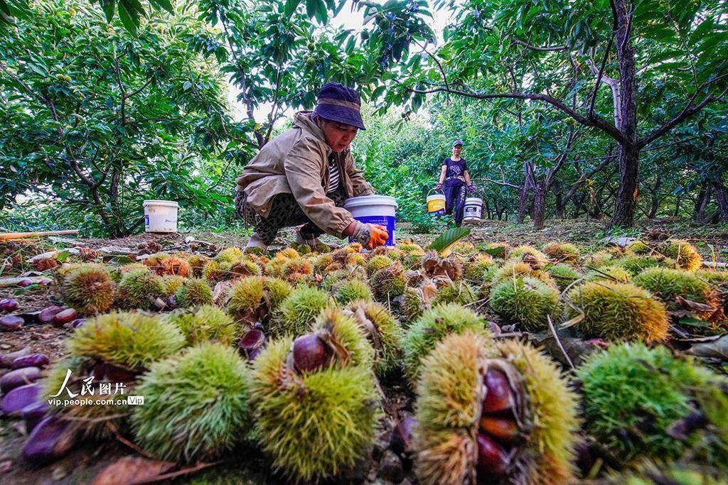2025年9月9日,河北省遵化市农民种植的早茬板栗已进入收获期,当地农民抢抓农时进行收获工作,栗树果园到处是农民忙碌的身影。